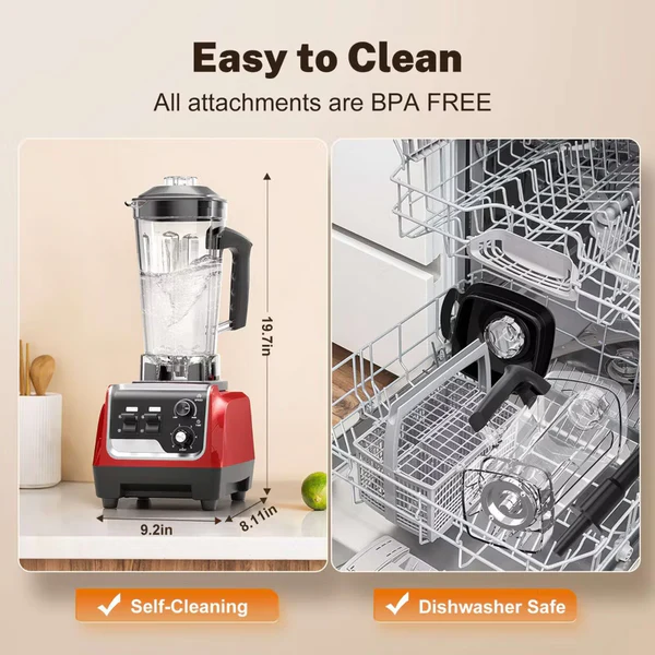 With its powerful 1800W motor and up to 25,000 RPM, this blender easily crushes ice cubes, fruits and vegetables for an ultra-smooth texture, making smoothies and milkshake drinks with ease. Its 70 OZ large capacity container is made of BPA-free food-grade materials, safe and healthy for family dinners and daily use.6 premium stainless steel blades are precision-designed to easily crush both nuts and ice cubes. The operation is simple and intuitive to seek. In addition, its classic red color appearance, beautiful and durable, adding elegance and practicality to the kitchen.
